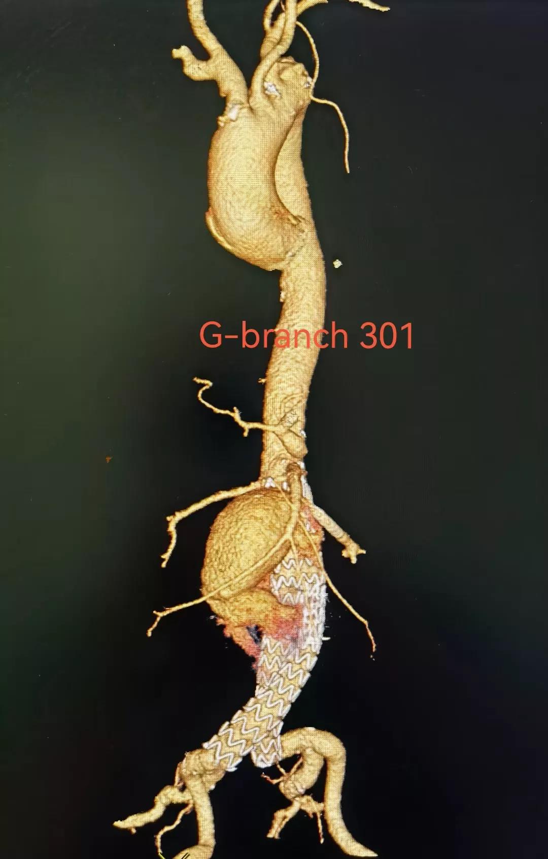 G-Branch™主体支架包含2个内嵌分支和2个外翻分支,可在完全微创腔内技术下进行分支血管重建,维持各脏器持续血供。这一创新设计,有效降低了内漏发生风险以及手术操作难度。同时,G-Branch™适应症广泛,可用于解剖结构更为复杂的病例,其主体支架的近、远端均可针对病变位置情况进行延长,其配套的外周支架可适用于不同直径的内脏分支,从而满足不同的临床治疗需求,为胸腹主动脉瘤的多分支腔内重建这一国际性难题提供了灵活有效的解决方案。